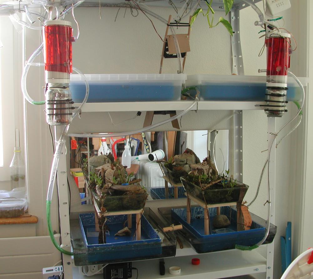 Lange plastikschläuche verbinden die einzelnen module.