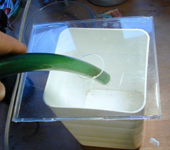 so verhindere ich, dass die motte dauernd davonfliegt. gemein aber effektiv :). the "killer" is simply a plastic box with a hole in the cover. you have a moth trapped in the exhaustor. if you blow the moth with force trough the whole, the moth will be stunned after the inpact with the box. now you can kill her easily with a pinsette. thats is how i prevent them from flying away. cruel but effective :). |
