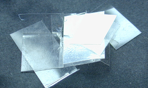 schnippsel von plastik verpackungen um nahrung darauf zu legen. thin plastic pieces are used as food plates. |